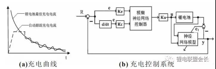 如图6(b)所示,将神经网络与模糊控制相结合,研究出了模糊神经网络控制器、神经网络模型,设计了智能充电控制系统。它既具有模糊控制器的善于表达人类的经验知识、推理能力强等特点,又具有神经网络控制器的直接从控制数据中学习知识、学习能力强等特点。实验验证,智能充电法在充电过程中电压变化平稳,充电时间短,因此它作为模糊自适应控制方案中的一种,未来将受到愈来愈多的重视。