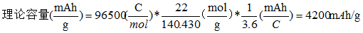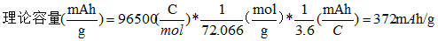 1、电极材料的理论容量电极材料理论容量,即假定材料中锂离子全部参与电化学反应所能够提供的容量,其值通过下式计算:其中,法拉第常数(F)代表每摩尔电子所携带的电荷,单位C/mol,它是阿伏伽德罗数NA=6.02214 ×1023mol-1与元电荷e=1.602176 × 10-19 C的积,其值为96485.3383±0.0083 C/mol