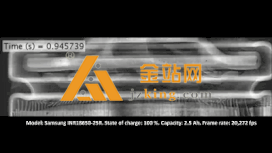 在整个测试过程中,作者发现电池的能量密度越高,则越容易发生爆炸。松下的电池容量达到3.4Ah,因此根据相关研究其在热失控中能够比其他几种电池(2.6Ah)多产生2L气体(2.5L/Ah)。为了分析电池的爆炸过程(0.01s)作者将X射线拍摄速度提高到了每秒20272张(视频9)。